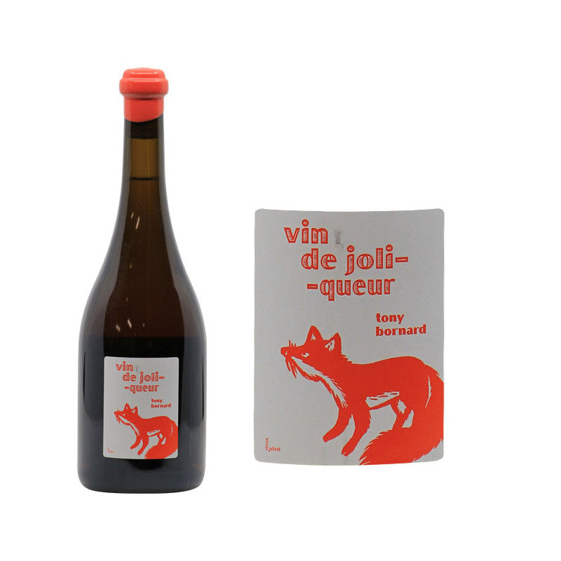 Tony Bornard, Vin de Joli-Queur - Semi-Sweet wine - Jura is produced from Chardonnay grapes, following an ancestral method. After pressing, the juice is slowly heated in large copper caldron for 48 hours, thus reducing the juice and concentrating the natural sugars present in the grapes. Then Tony adds pure grape alcool (mutage) to stop / prevent fermentation. Then follows a very long elevage in used oak barrels, that gives this beautiful wine its nutty, complex character. As delicious as it is unusual.
